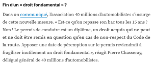 Une mesure prise et imposée par Bruxelles, concernant de nouvelles contraintes, pour une validation « temporaire » d’un futur« permis de conduire probatoire VL » (véhicule léger) de 15 ans (pour l’instant), pour tous, et visant particulièrement les conducteurs (trices) « âgés » de plus de 65 ans, responsables selon la directive, de la majeure partie des accidents de la route, alors, quand est-il réellement.