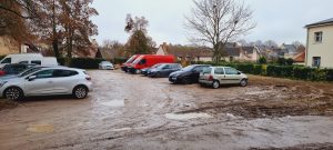 Ce qui fût un espace vert (très apprécié des élèves du lycée Marceau) et transformé en plateforme : logistique/stockage/parking, par la société en charge de la « construction » des axes du BHNS (bus urbain), a été pris d’assaut par les riverains, pour stationner. Mais il faut croire que cela déplaisait a certaines personnes (?) car il a été placé des plots en béton, pour en interdire définitivement l’accès !